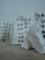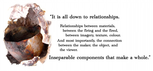 "As a conceptual artist, I predominantly use paper-clay as both a canvas, and an integral part of the environment that imagery and mark-making are applied to. The conceptual sculptures combines traditional methods of working with slabs, slumping and hand building, with modern digital-art transfers.