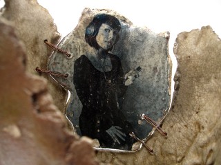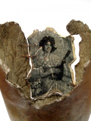 Digital transfers are built up by combining images with shapes and pattern that simulate organic growth, and so is just another facet of the finished work. These become integrated even further with burn-off and other consequences of smoke firing."