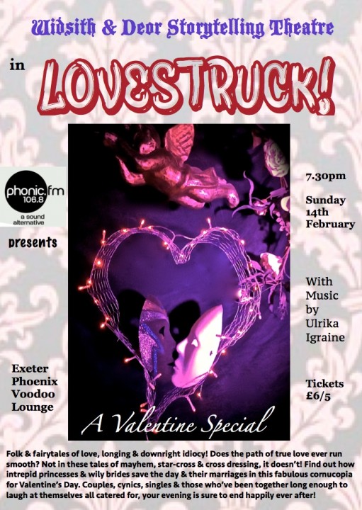This Sunday Widsith & Deor Storytelling Theatre is bringing you "Lovestruck", at the Exter Phoenix Voodoo Lounge, 7.30pm! And Ulrika-Igraine will be providing the music!